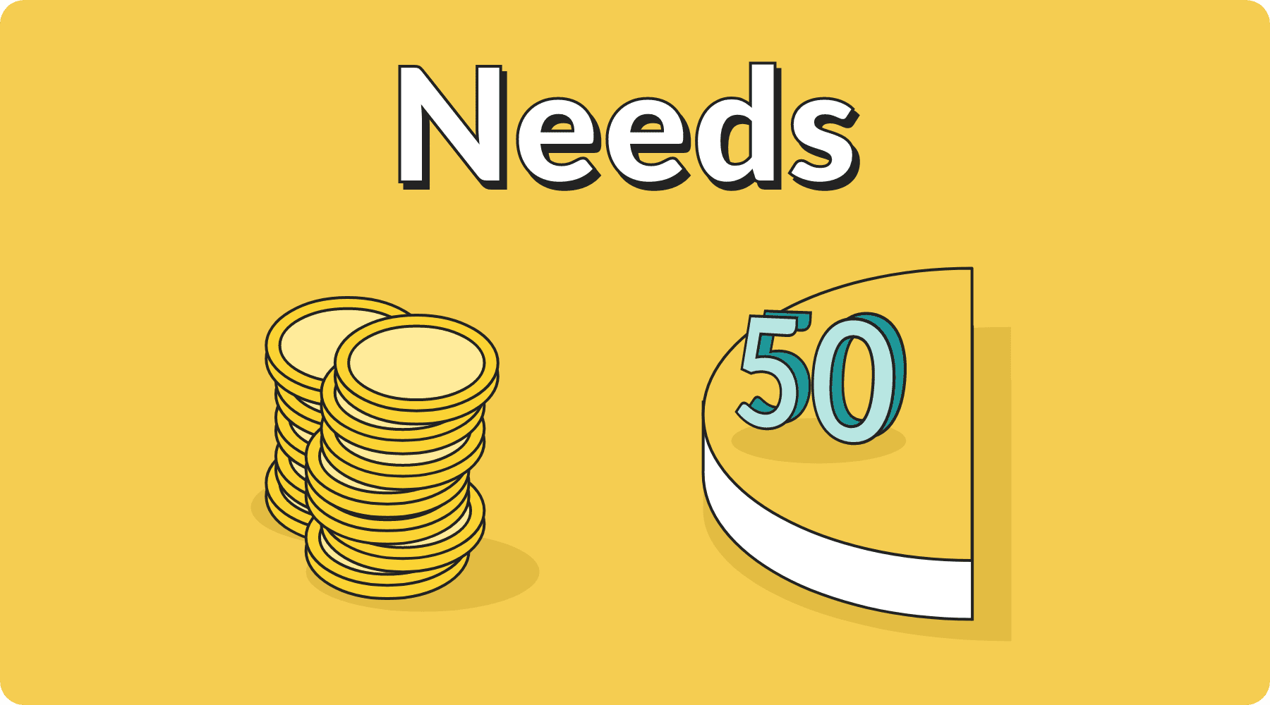 The lion’s share of your after-tax income is going to go to your needs. Your needs are your absolute must-haves or must-dos. Be strict with yourself in this section. Takeout food, lottery tickets, treats and holidays are not ‘needs’.