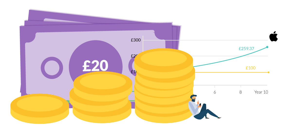By putting a regular amount of money away early, you’ll be able to see greater amounts of an exponential growth curve on your returns. This is because the money you make each year will in turn make more money, growing further and further.