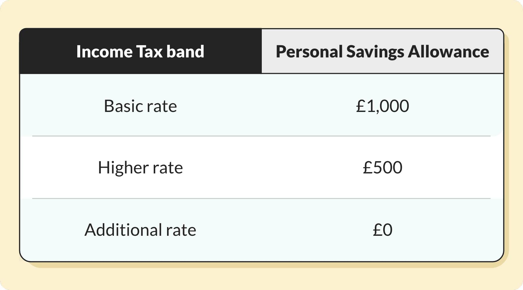 Finally, there’s your Personal Savings Allowance, which is related to your income tax band. You can find out which tax band you’re in based on your income on the government’s website.