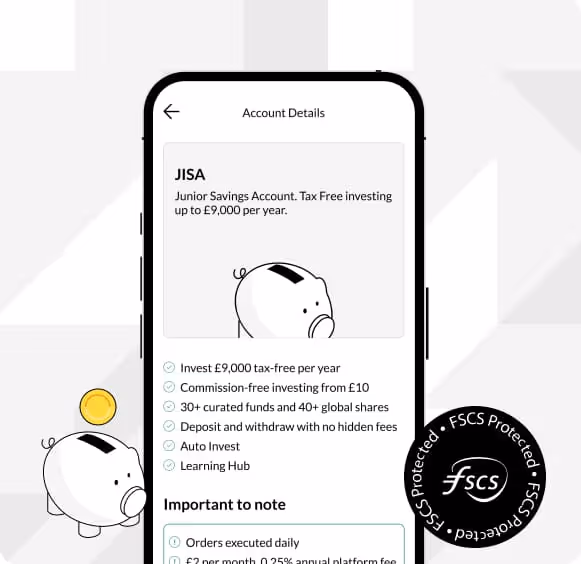 We charge £2 per calendar month for our Investment plan, which includes: Stocks & Shares ISA, Junior Stocks & Shares ISA (Junior ISA (JISA) and for our General Investment Account (GIA). This covers your transaction and investing costs, and grants you access to our funds and stocks, daily trades, Auto Invest, and Learning Hub.