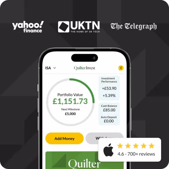 There is also a platform fee of 0.25% of your portfolio value, e.g. £25 per £10,000 per year which is charged monthly. At any time, you can view the fees you will pay per month for your investment accounts by opening the Quilter Invest app > 'Account' > 'Fees & Charges'. These low fees make Quilter Invest one of the cheapest providers out there!